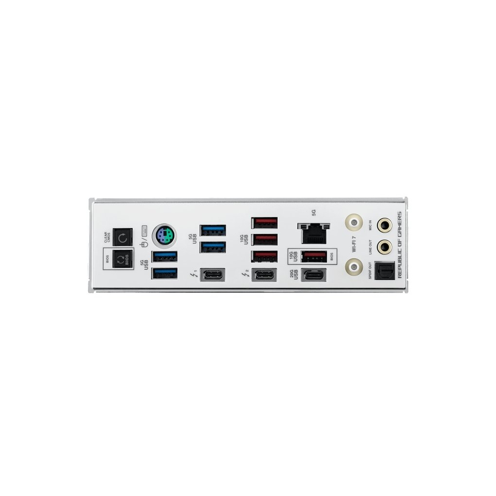 | Зовнішні порти | 1 x Clear CMOS button, 8 x USB 3.2 Gen2, 1 x USB 3.2 Gen1 Type-C, 1 x BIOS FlashBack Button, 1 x Wi-Fi Module, 1 x RJ45, 1 x PS/2, 2 x Thunderbolt, 1 x coaxial SPDIF out, 2 x Audio |