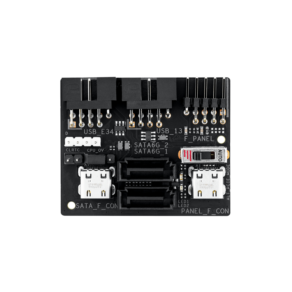 Внутрішні можливості материнської плати не менш вражаючі: платформа підтримує 2 x M.2 для швидких накопичувачів та 2 x SATA 6.0 Gb/s для додаткового зберігання даних. Зручність розміщення компонентів та передбачене управління кабелями роблять цю плату універсальною та легкою у встановленні навіть в обмеженому просторі.