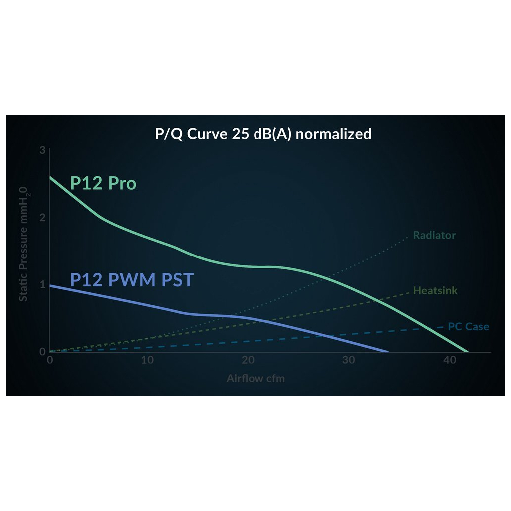 Завдяки високому статичному тиску вентилятори Pro ефективно проганяють повітря через вузькі простори. Це робить їх ідеальними для радіаторів, перфорованих панелей і сітчастих фільтрів.