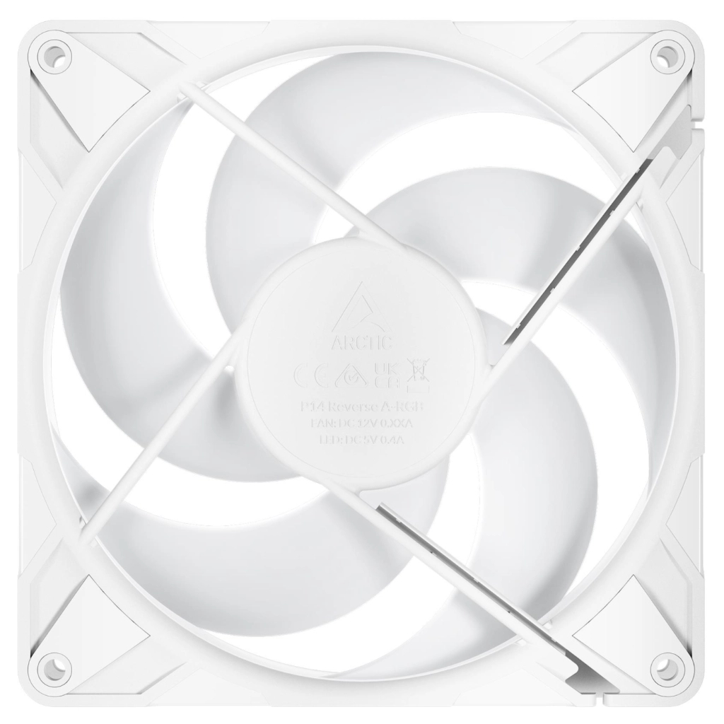 ARCTIC P14 Pro Reverse ARGB 3P White (ACFAN00328A) — це вибір тих, хто шукає ідеальне поєднання потужного охолодження, тиші та естетики. Це рішення для геймерів, ентузіастів і професіоналів, яким важливо, щоб система виглядала так само добре, як і працювала.