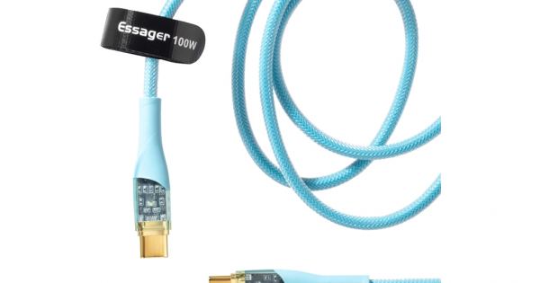 Тип - кабель, Тип конектора 1 - USB Type-C, Тип конектора 2 - USB Type-C, довжина - 1 м, тканинне обплетення, 100 Вт, Цифровий дисплей для контролю за споживаною потужністю, Відображення потужності в реальному часі: вихідна потужність відображається в режимі реального часу, дозволяючи дізнатися потужність заряджання та стан пристрою, Колір - синій