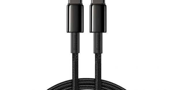 Тип - кабель, Тип конектора 1 - USB Type-C, Тип конектора 2 - USB Type-C, довжина - 1 м, Номінальний струм - 5 А, нейлонове покриття, максимальна швидкість передачі даних: 480 МБ/с, до 100 Вт живлення, Колір - чорний..