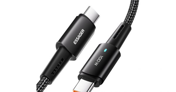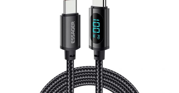 Тип - кабель, Тип конектора 1 - USB Type-C, Тип конектора 2 - USB Type-C, довжина - 1 м, тканинне обплетення, 100 Вт, Цифровий дисплей для контролю за споживаною потужністю, Відображення потужності в реальному часі: вихідна потужність відображається ..