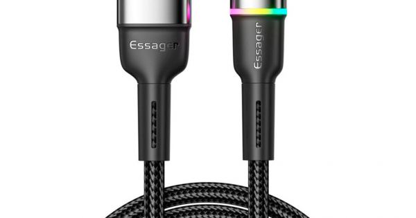 Тип - кабель, Тип конектора 1 - USB, Тип конектора 2 - Lightning, довжина - 2 м, Номінальний струм - 2.4 А, тканинне обплетення, Зі світлодіодним індикатором, зручний у використанні вночі, Колір - чорний..