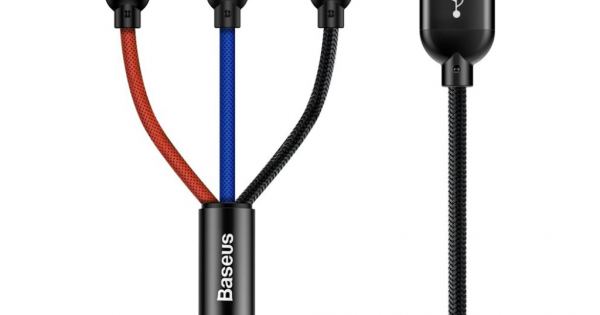 Тип - кабель, Тип конектора 1 - USB 2.0 (AM), Тип конектора 2 - micro USB, Lightning, USB Type-C, довжина - 1.2 м, заряджання 3 пристроїв одночасно, Колір - синій, червоний, чорний..