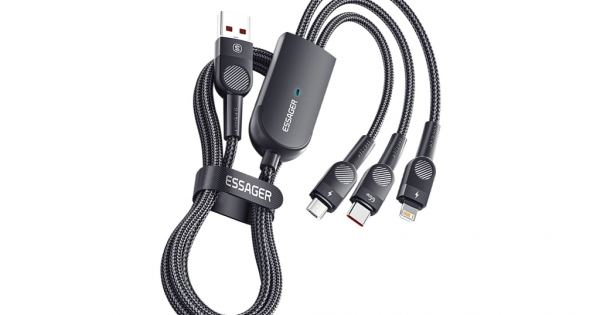 Тип - кабель, Тип конектора 1 - USB, Тип конектора 2 - micro USB, Lightning, USB Type-C, довжина - 1.2 м, тканинне обплетення, 66 W, Порт Type-C: 6A (max) Порт micro-USB: 2.4A (max) Порт Lightning: 2.4A (max), Колір - чорний