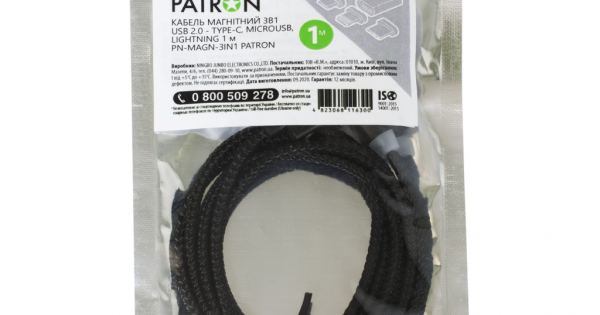 Тип - кабель, Тип конектора 1 - USB 2.0, Тип конектора 2 - micro USB, Lightning, USB Type-C, довжина - 1 м, магнітні конектори, Колір - чорний..