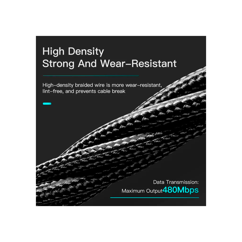 | Особливості | тканинне обплетення, максимальна швидкість передачі даних: 480 МБ/с, Fast Charge, Широка сумісність із пристроями з портом Lightning, такими як iPad/iPhone. |