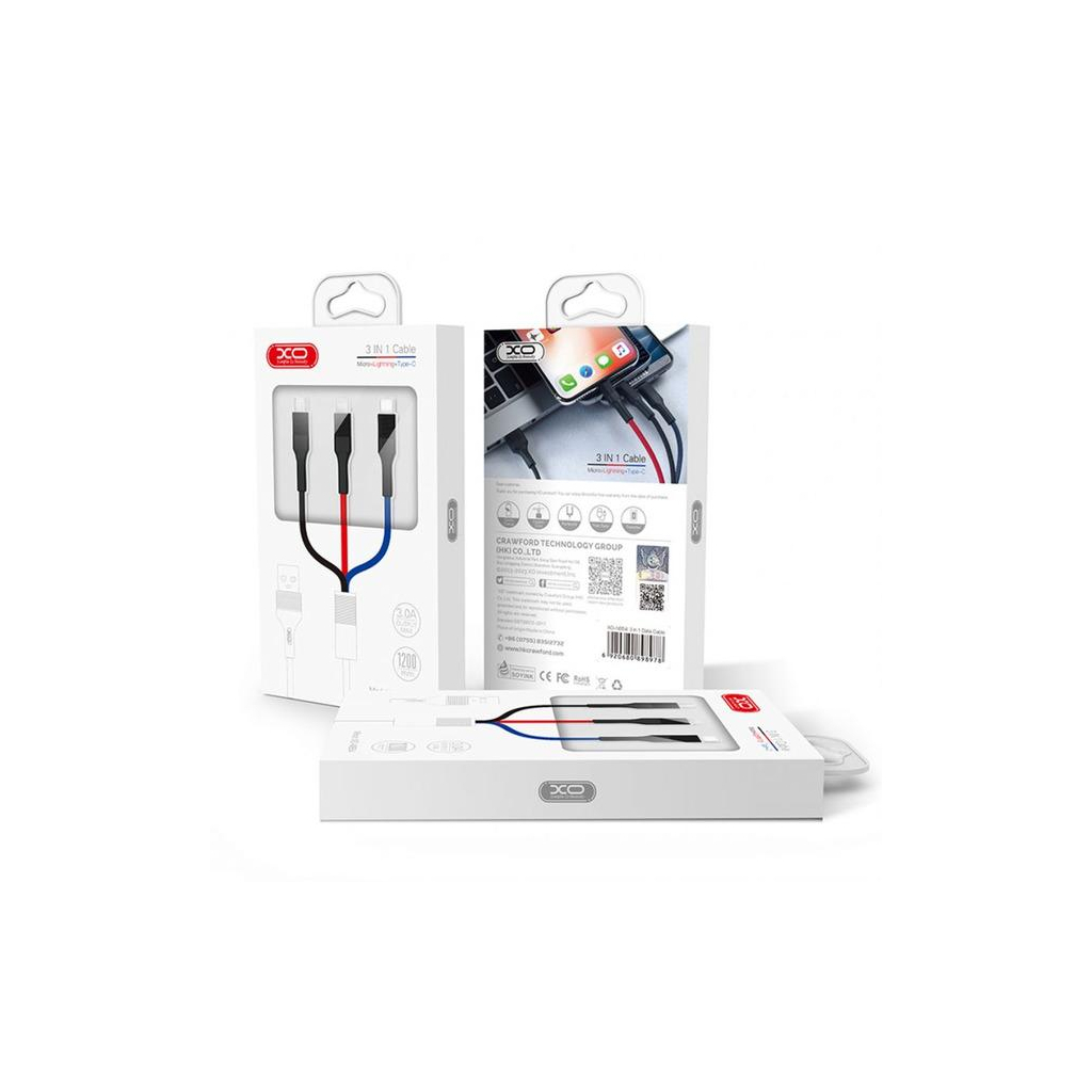 Дата кабель USB 2.0 AM to Lightning + Micro 5P + USB-C 1.2m black XO (XO-NB54-3in1)