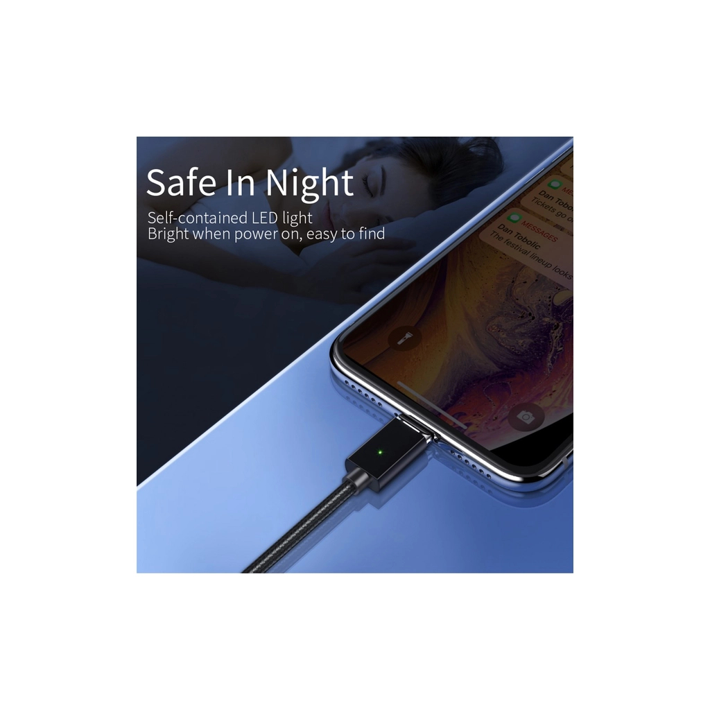 Магнітний конектор для безпечного використання. Захищає порт телефону чи ноутбука від забруднення та зносу Підтримує стандарти швидкого заряджання Розумний чіп Швидка передача даних Нейлонове обплетення Стійкість до заплутування, вигинів, надійність Дизайн Магнітний кабель Essager USB to Micro виконаний із якісних матеріалів. По всій його поверхні можна виявити нейлонове захисне обплетення. Міцний матеріал не тріскається та не рветься. За рахунок нейлонового обплетення, кабель можна згинати на 360 °. Сам кабель виконаний із термопластичного еластомеру, а конектори – з алюмінієвого сплаву з роз'ємами USB to Micro. Безпечний заряд батареї Магнітний кабель Essager має вбудований захист, який усуває перегрів та перевантаження. Наповнюйте енергією ваш пристрій швидко та безпечно. Високоякісний кабель Essager USB to Micro ідеально сумісний з будь-яким пристроєм із роз'ємом Micro.