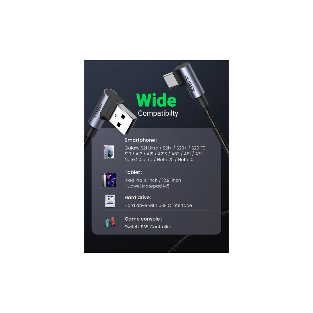Дата кабель USB 2.0 AM to Type-C 1.0m US176 Both Angled 3A (Black) Ugreen (20856)