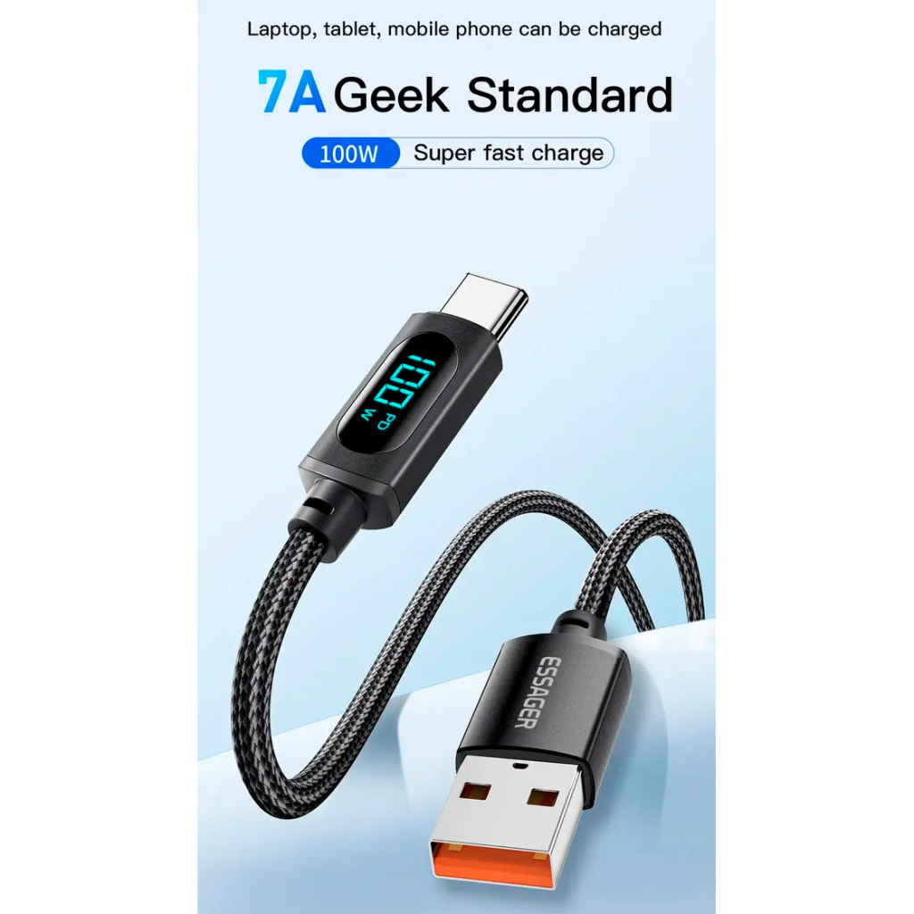 Високоякісний кабель Essager LED Digital Display USB-A для Type-C Cable ідеально сумісний з будь-яким пристроєм з роз'ємом Type-C.
