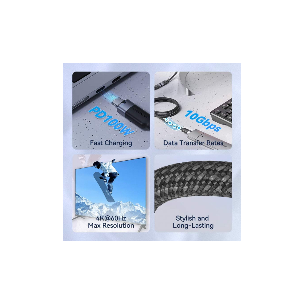 Дата кабель USB-C M/F 1.0m 100W 10Gbps 4K60Hz VENTION (TRFBF)