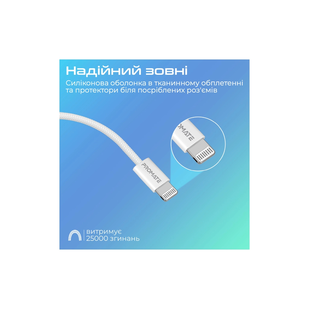 Дата кабель USB-C to Lightning 1.2m Promate (ecoline-ci120.white)