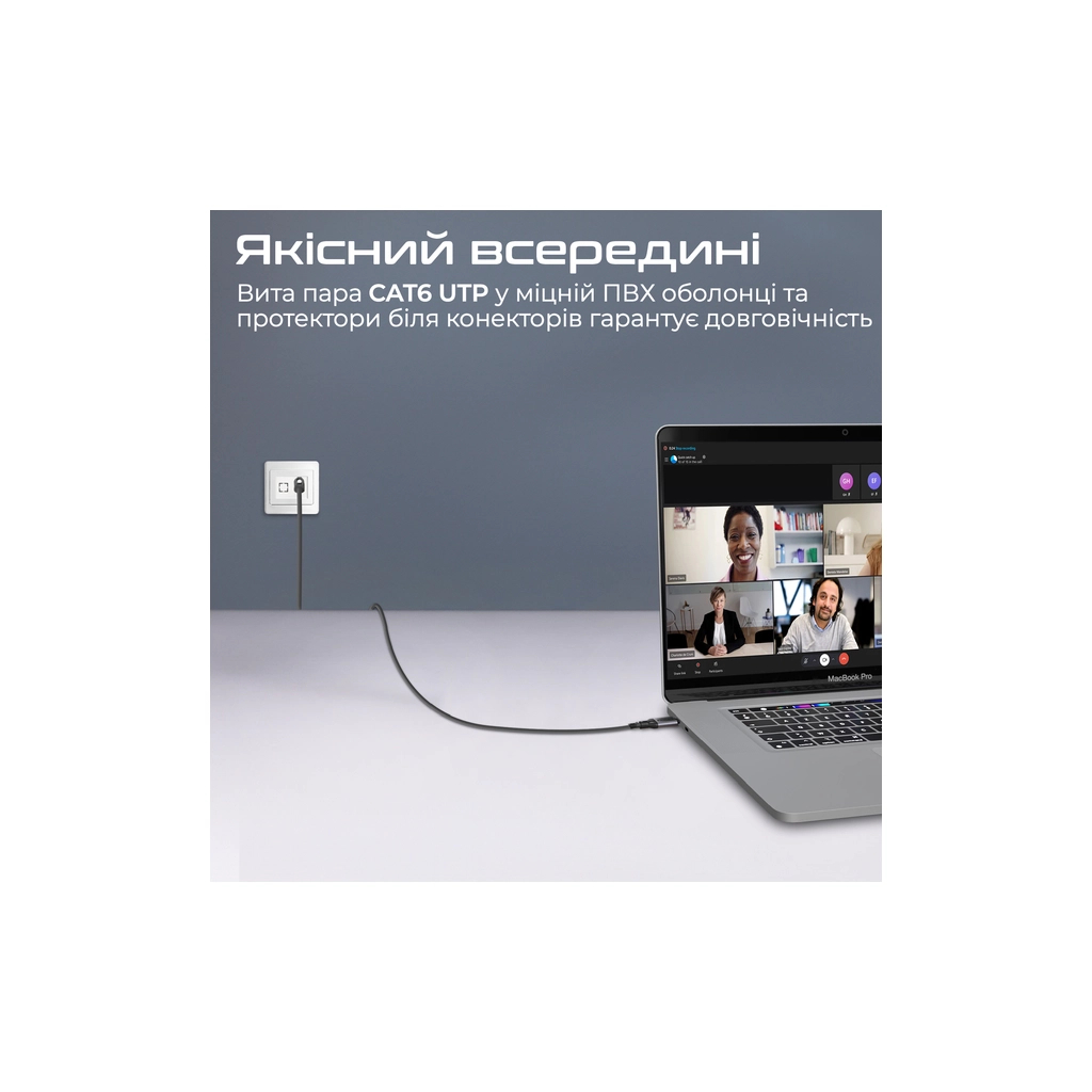 • Якісний всередині: Вита пара CAT6 UTP у міцній ПВХ оболонці та протектори біля конекторів гарантують довговічність і надійну роботу.
