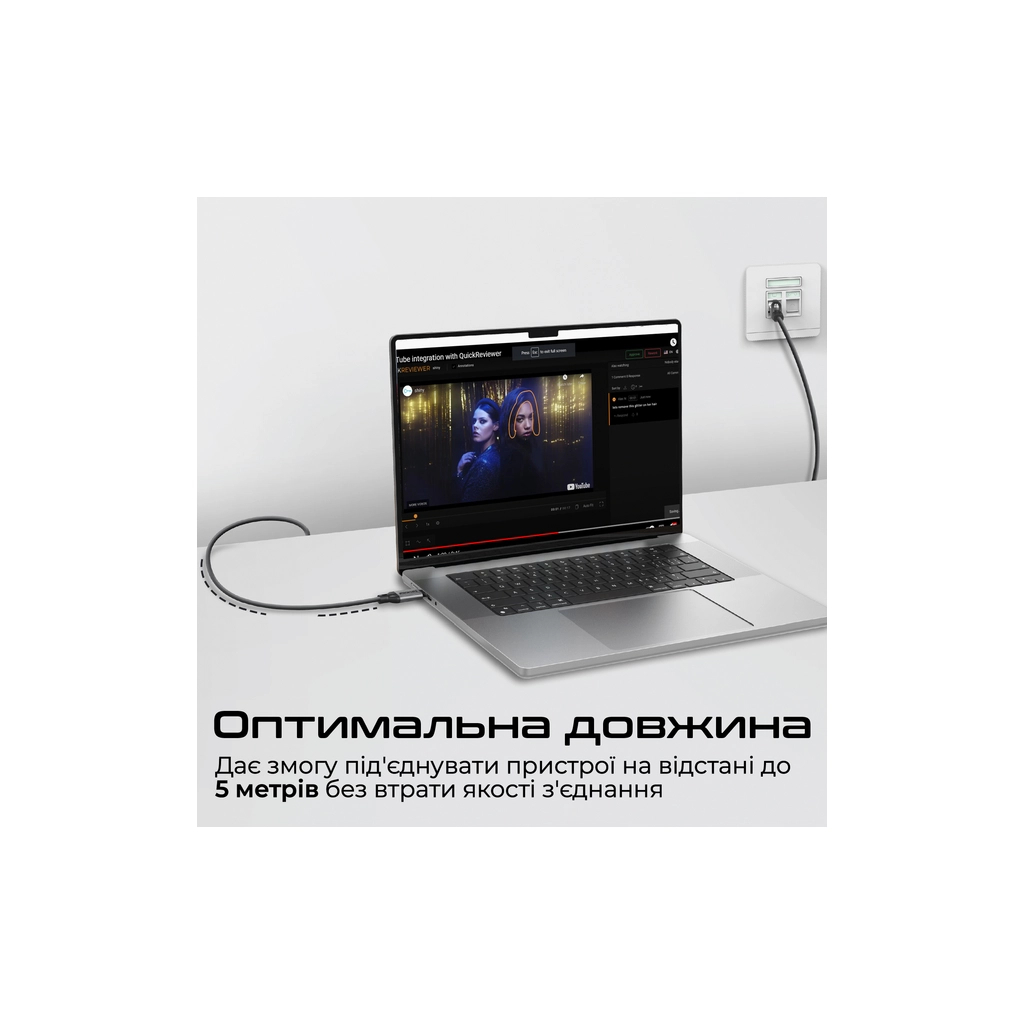 • Оптимальна довжина: Дає змогу під'єднувати пристрої на відстані до 5 метрів без втрати якості з'єднання.