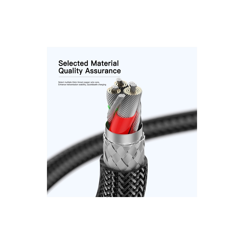 Зарядний кабель Essager має унікальну та якісну конструкцію, яка гарантує тривале використання без втрати функціональності. Форма роз'ємів та тканинне обплетення убезпечать від перегинання кабелю під час експлуатації.