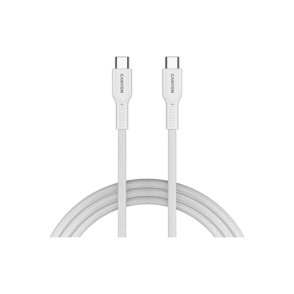 Дата кабель USB-C to USB-C 1.0m OnWire 60CL C-C 60W COLOR Braided 1m White Canyon (CND-CCAP60AB10W)