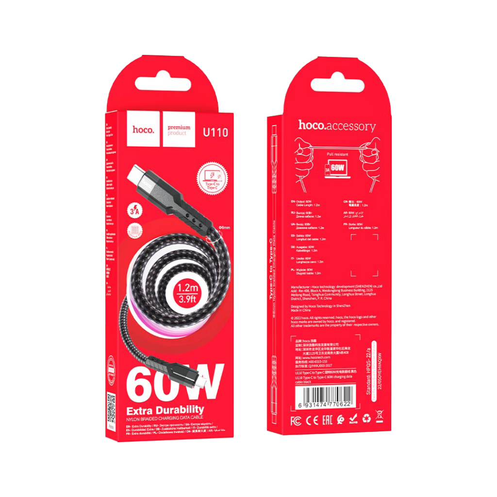 Дата кабель USB-C to USB-C 1.2m 60W U110 black HOCO (6931474770622)