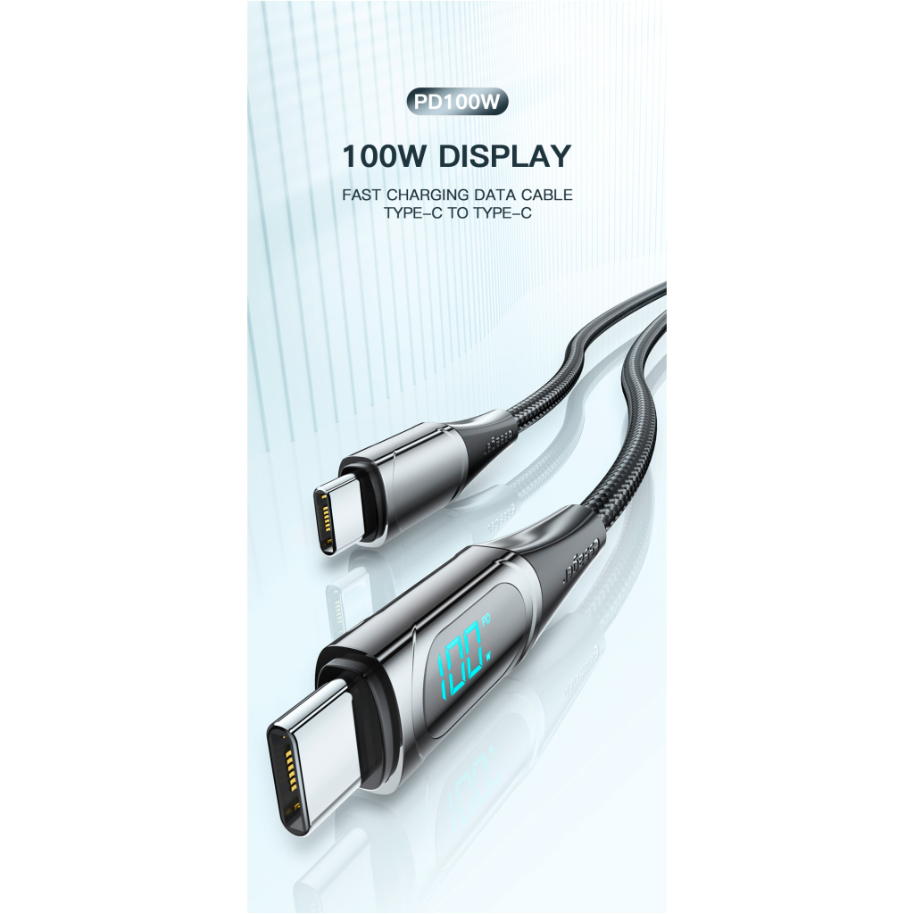 Тип - кабель, Тип конектора 1 - USB Type-C, Тип конектора 2 - USB Type-C, довжина - 2 м, Номінальний струм - 5 А, тканинне обплетення, швидка зарядка - Quick Charge, 100W, Відображення потужності в реальному часі: вихідна потужність відображається в режимі реального часу, дозволяючи дізнатися потужність заряджання та стан пристрою, Колір - синій