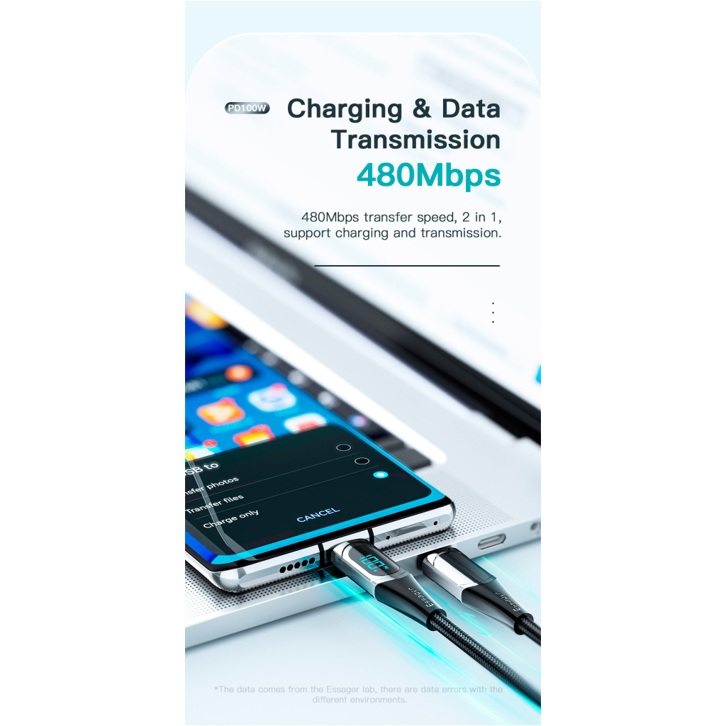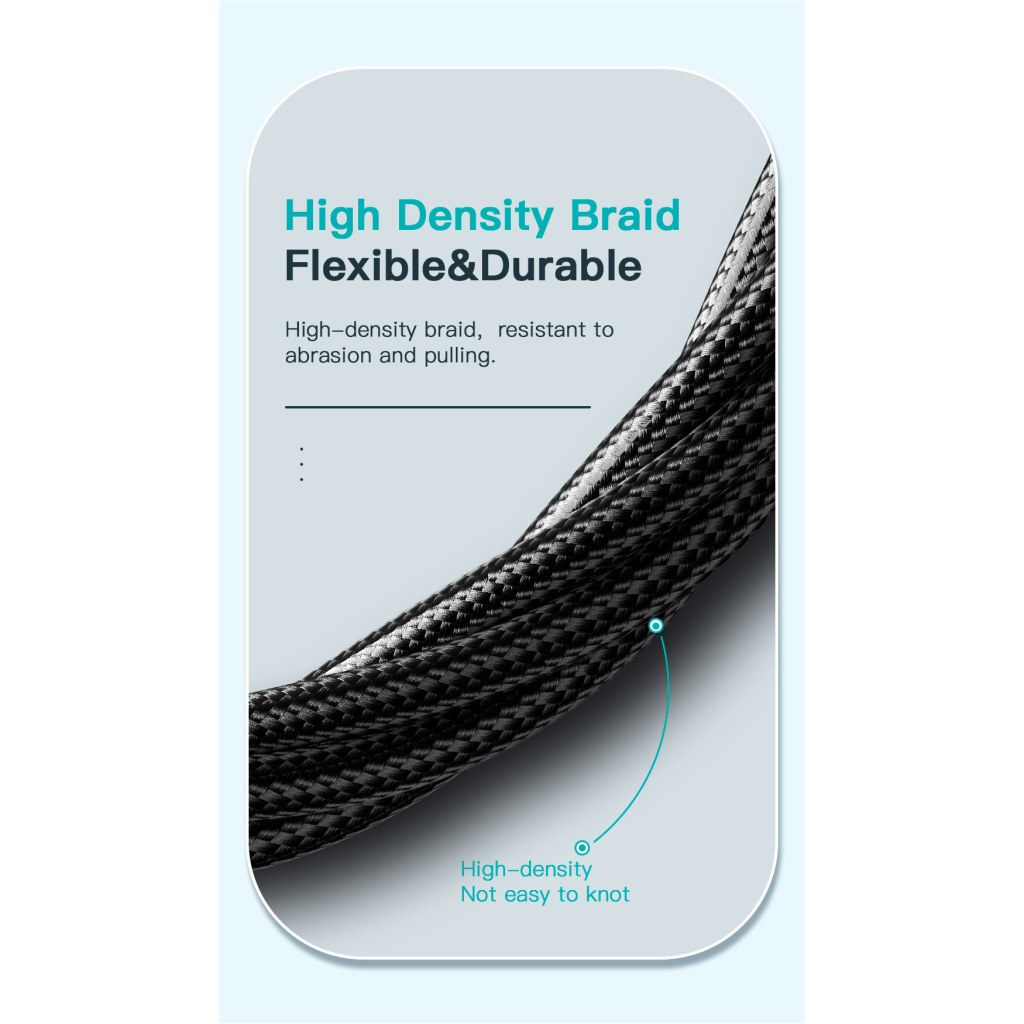 Кабель Essager у нейлоновому обплетенні преміум-класу з роз'ємом, посиленим цинковим сплавом, забезпечує довгий термін служби та відсутність заплутування. Конструкція із захистом від натягу та міцний алюмінієвий екран роблять кабель міцним та надійним.