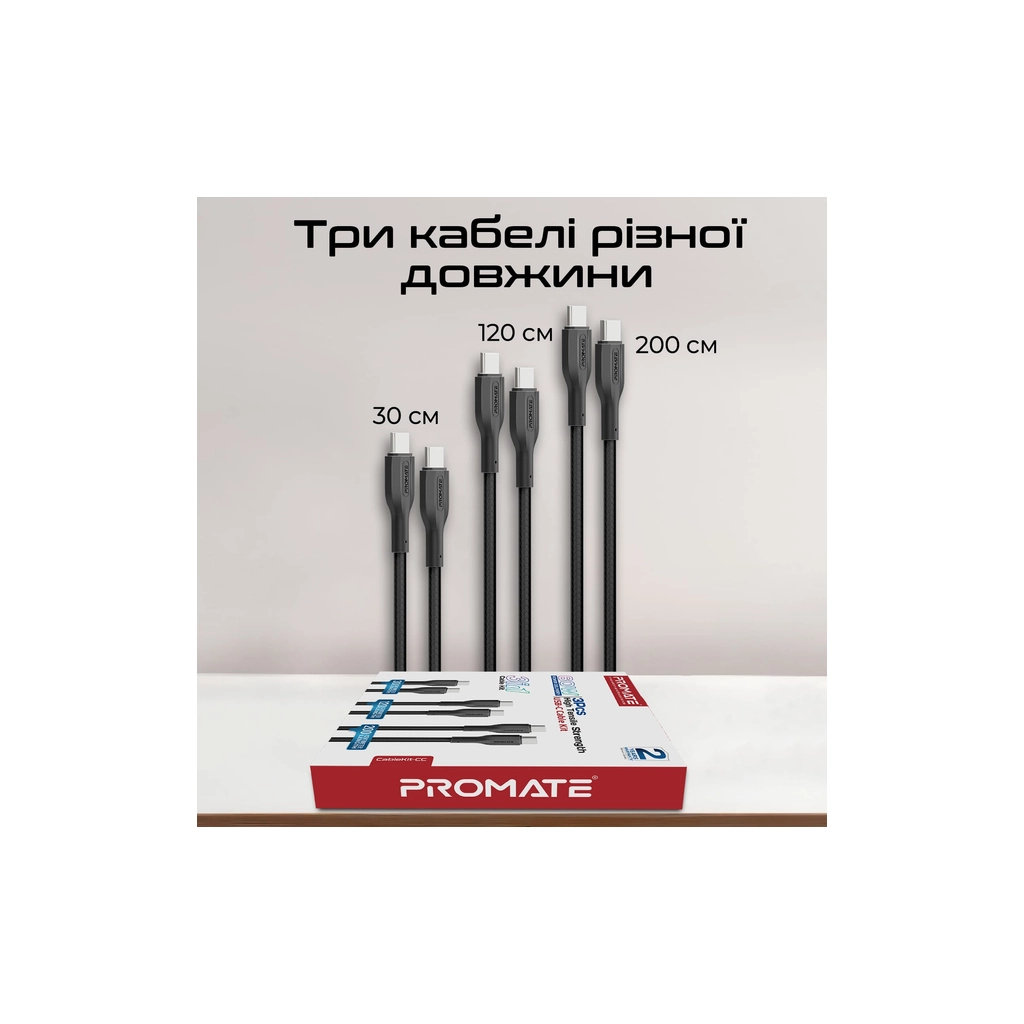 Дата кабель USB-C to USB-C 2.0m Promate (cablekit-cc.black)