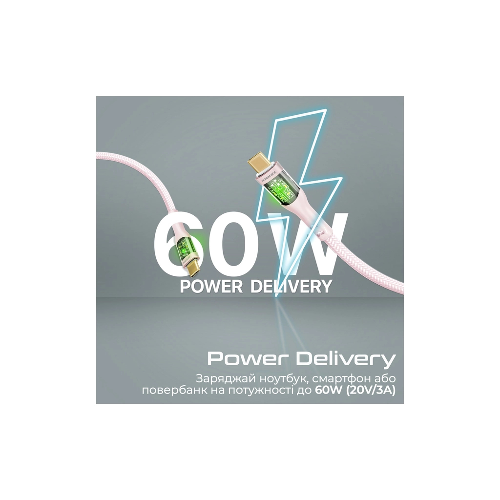 Дата кабель USB-C to USB-C 2.0m Promate (transline-cc200.pink)